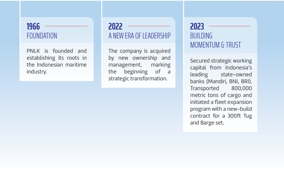 In December 2022, PNLK embarked on a significant new chapter. Under new ownership and a revitalized management team, the company has pivoted its strategic focus. Our leadership comprises seasoned professionals with over a decade of dedicated experiences, managing a diverse portfolio of domestic and international clients, including major players in the coal industry.